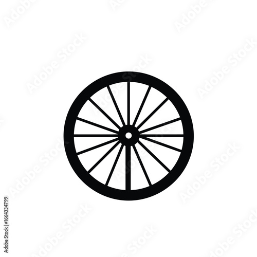 wheel, black, spoke, circle, round, transport, vehicle, vintage, retro, classic, simple, graphic, icon, design, object, isolated, white, background, rim, hub, circular, motion, travel, old