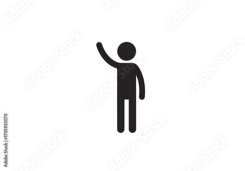 stick, figure, waving, black, standing, human, man, arm, raised, gesture, person, silhouette, simple, minimalist, icon, signs, symbol, abstract, shape, representation, greeting, hallo, communication, isolated, white, background, pose, design, illustration, clip, art, vector, image, graphic, male, adult, body, movement, motion, character, uniform, form, outline, drawing, hand, positivity