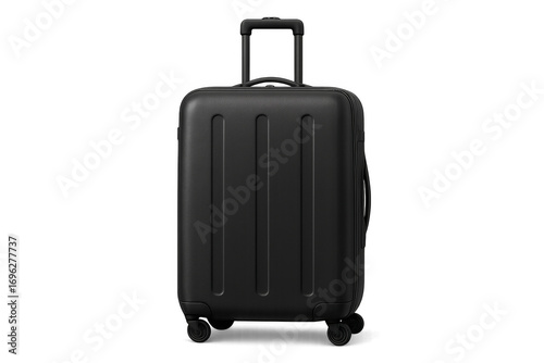 Black suitcase standing upright on transparent background