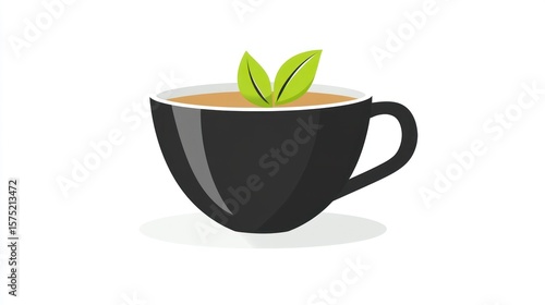 cup, tea, black, hot drink, drink, hot, beverage, leaf, green, plant, natural, healthy, simple, illustration, flat, design, isolated, white, background, image, smooth, ceramic, vessel, warm, liquid, content, organic, minimalist, modern, icon, graphic, vector, element, leaf, 2, style, still, life, food