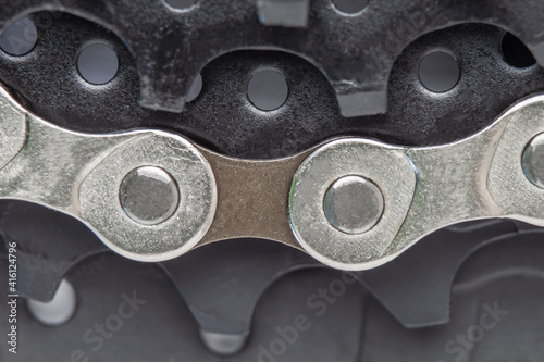 bicycle, sport, bike, closeup, mountain bike, detail, part, transport, equipment, component, spare, gear, metal, transmission, cassette, sprocket, biking, star, steel, metallic, teeth, system, speed, asterisk, cogwheel, spare part, black, new, object, macro, chain, link, studio shot, clean, pattern, background