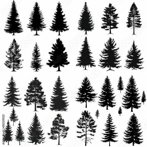black tree silhouette set pure badge eco outline recreation breath emblem label protection graphic pine trunk woodland