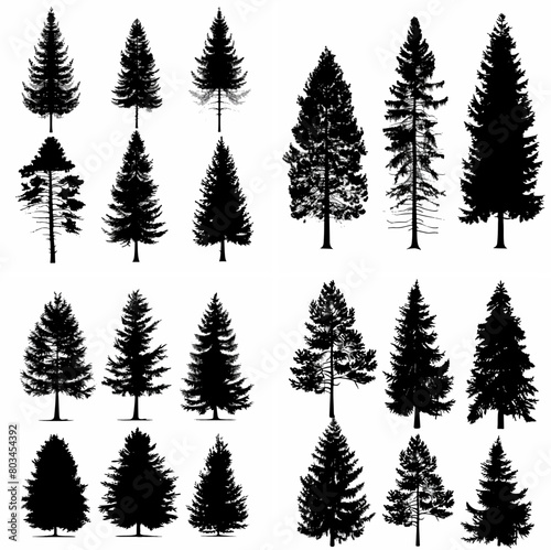 black tree silhouette set pure badge eco outline recreation breath emblem label protection graphic pine trunk woodland