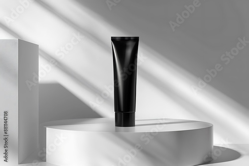 d, advertising, background, beauty, black, blank, bottle, clean, closeup, cosmetic, cream, cylinder, design, display, elegant, facial, fashion, female, glamour, glossy, health care, hygiene, illustration, isolated, label, light, luxury, make-up, medicals, minimal, package, cardboard box, pedestal, photo, plastic, dais, product, realistic, render, skincare, smooth, stage, studio, sun, sunlight, tube, white