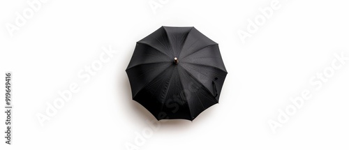 Black umbrella on white background with brown spot in umbrella's center