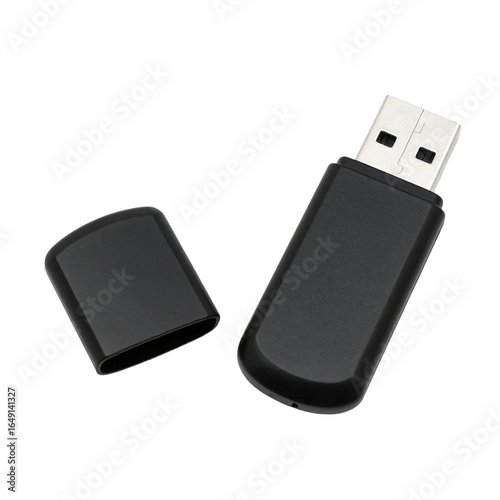 Black USB Flash Drive isolated on white or transparent background