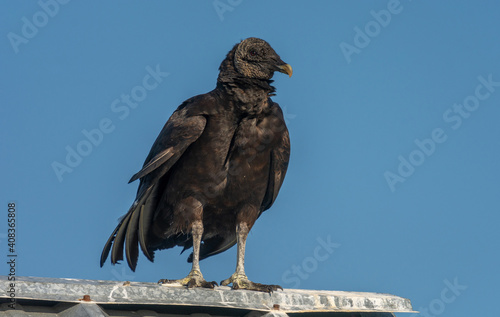 bird, animal, outdoors, black vulture, nature, natural, perched, roof, rooftop, black, wild, wildlife, florida, conservation, environment, predator, scavenger, us, birding, birding, avian, fauna, buzzard, ornithology, feather, large, ecology, scavenging, sitting, watchful, powerful, accipitridae, native, aves