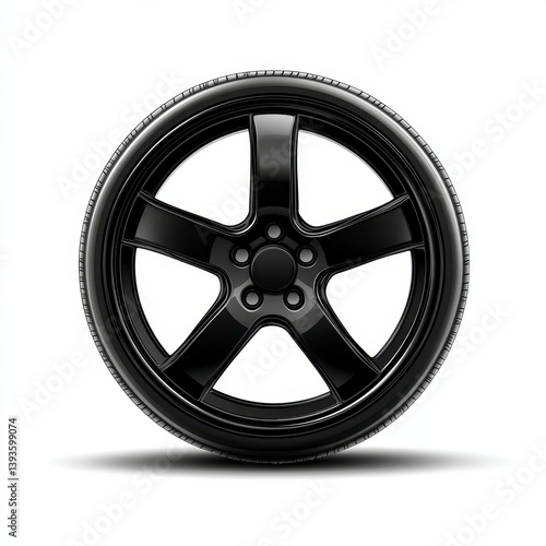 wheel, tire, black, rim, automobile, automotive, car, vehicle, part, component, isolated, white background, minimal, design, icon, glossy, shiny, metal, alloy, sport, transportation, modern, clean, simple, elegant, luxury, high-quality, realistic, detailed, three-dimensional, rendering, graphic, image, illustration, vector, background, template, texture, pattern, style, concept, object, element, spare part