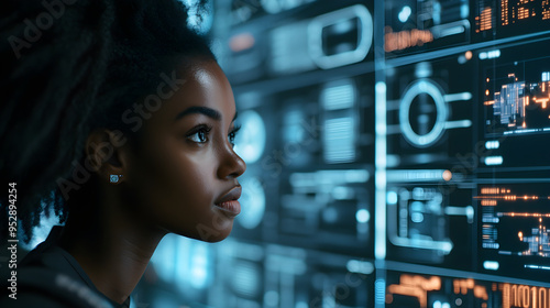 Black Woman IT Specialist Confronts AI Cybersecurity Threats with Precision