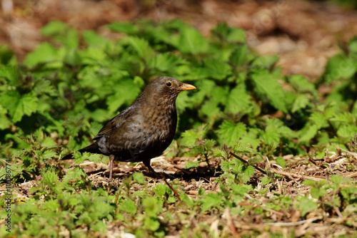 blackbird, bird, nature, wildlife, common, animal, garden, black, wild, tree branch, background, outdoors, eye, portrait, beautiful, closeup, yellow, looking, beak, green, eurasian, summer, forest, songbird, spring, britain, europa, female