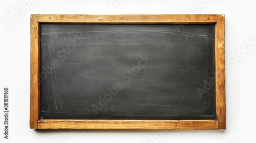 Blackboard in wooden frame isolated on a white background. Black chalkboard background texture