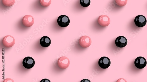 Black/pink spheres in pattern, flat lay, casting shadows, background use