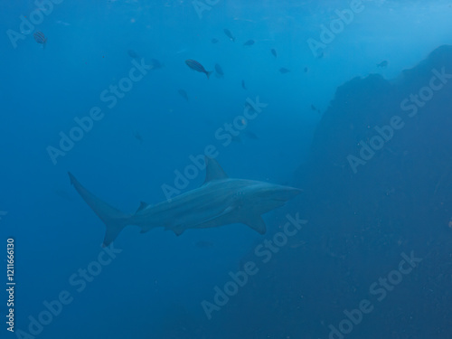 大きく美しいカマストガリザメ(メジロザメ科)他。 英名学名:Blacktip shark, Carcharhinus limbatus 静岡県伊豆半島賀茂郡南伊豆町中木ヒリゾ浜2024年