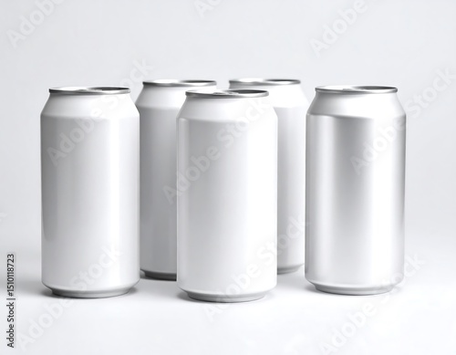 aluminium, beverage, can, blank, empty, silver, metallic, white, cardboard box, product, design, group, 4, 5, soda, drink, cylindrical, smooth, shiny, modern, studio, light, background, isolated, display, advertising, promotion, template, graphic, illustration, three-dimensional, rendering, commercial, front, side, top