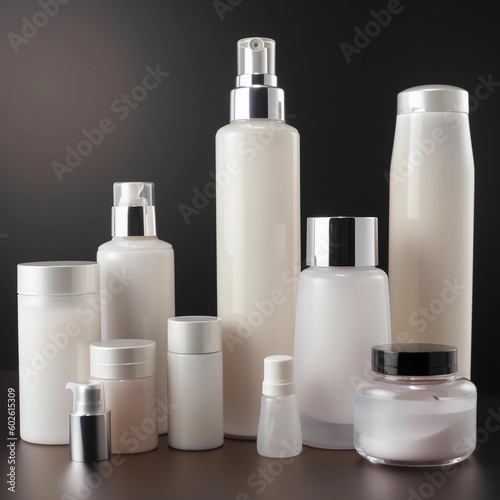 Blank and Ready for Customization: Beautiful Group of Skin Care and Beauty Product Bottles, Created by Generative AI