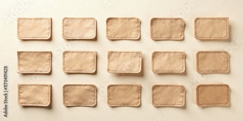tags, label, blank, beige, rectangle, square, craft, hand-made, texture, background, design, element, template, paper, card, natural, rustic, sewing, stitch, branding, cardboard box, pattern, arrangement, grid