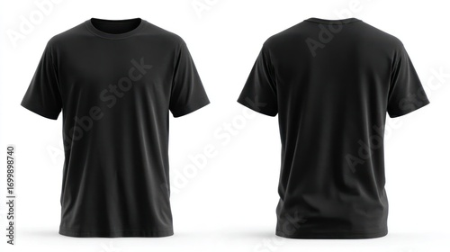black, t-shirt, blank, shirt, front, back, apparel, design, template, illustration, digital, graphic, clothing, textile, fashion, print, ready, display, product, versatile, rendering, image, photo, studio, isolated, round, neckline, short, sleeve, casual attire, wearable, model, unisex, simple, solid, cotton