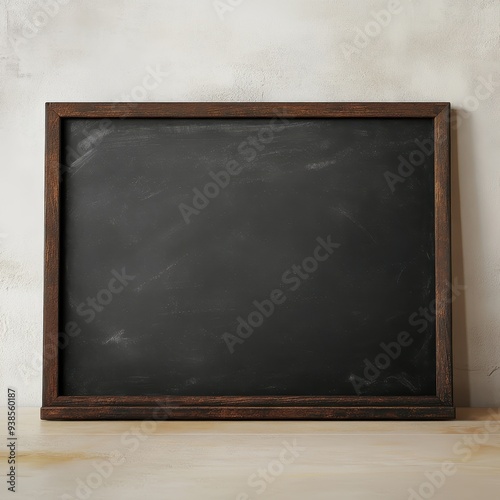 Blank Chalkboard With Wooden Frame on a White Wood Table