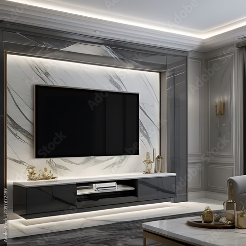 Blank digital screen integrated into a luxury room.