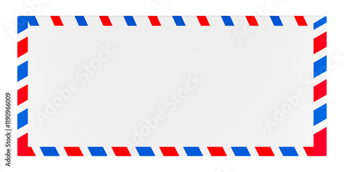Blank Envelope, front view. Template, mock up. 3D rendering isolated on transparent background