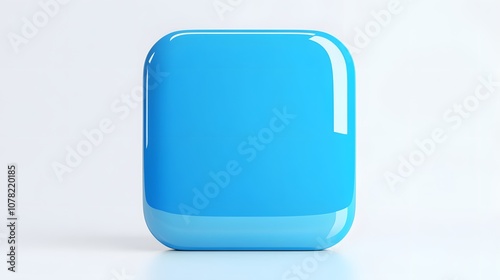Blank Mobile application icon, button - blue square with round corners. 3d rendering, white background