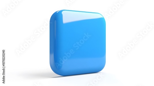 Blank Mobile application icon, button - blue square with round corners. 3d rendering, white background