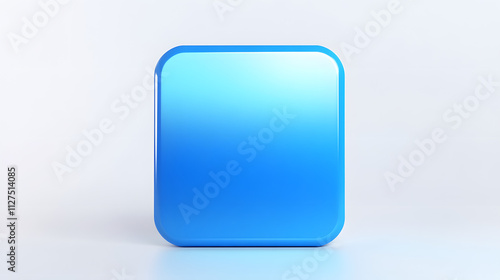Blank Mobile application icon, button - blue square with round corners. 3d rendering, white background