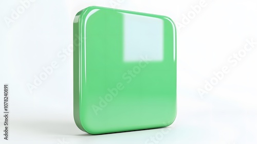 Blank Mobile application icon, button - green square with round corners. 3d rendering, white background