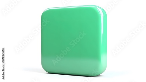 Blank Mobile application icon, button - green square with round corners. 3d rendering, white background