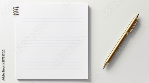 notebook, gold, pen, white, paper, lined, surface, flat, background, spiral, blank, writing, stationary, office, desk, clean, minimal, design, simple, empty, classic, elegance, layout, creative, composition, still, life, minimalist, modern, bright, neutral, colours, light, tone, fresh, professional, business