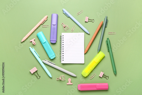 blank, green, notebook, school, stationery, accessory, background, clip, collection, college, colours, copy, copybook, diary, different, education, empty, exercise, flat, group, homework, cognition, lay, learn, learning, lesson, many, marker, note, object, office, open, organiser, page, paper, pen, set, sheet, space, student, study, studying, task, template, text, top, university, view