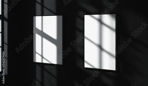 blank, paper, document, poster, shadow, light, window, room, dark, black, white, contrast, minimalist, modern, graphic, design, presentation, template, display, product, interior, still life, photographic, advertising, promotion