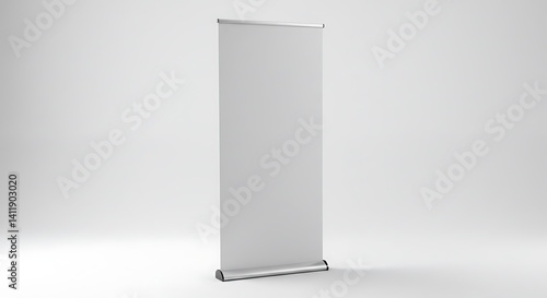 Blank Retractable Banner Stand, Minimalist Display, Isolated White Backdrop, Unbranded Presentation.