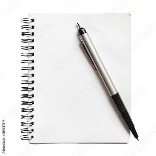 Blank spiral-bound notebook with pen