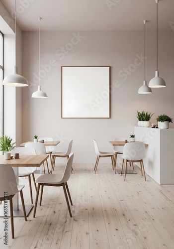Blank square frame mockup in a bright scandinavian style cafe
