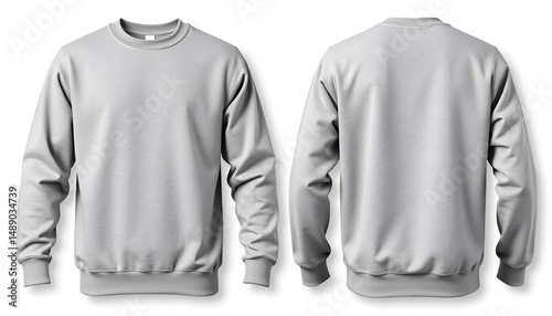 Blank sweatshirt color grey template front and back view on white background, Backlit. White tone