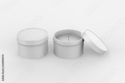 blank travel tin candle mock up isolated on a white back ground. 3d render illustration.