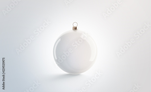Blank white christmas ball for tree mockup, isolated, 3d rendering. Empty toy bal mock up. Clean new year light glob for fir-tree, front view. Xmas sphere decorations for branding identity