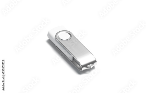 Blank white closed usb stick mockup, side view