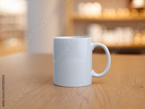 Blank white coffee mug on wooden table