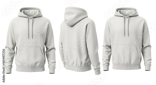 hoodie, clothing, apparel, sweatshirt, blank, template, fashion, design, wear, casual attire, textile, garment, isolated, white, front, back, side, realistic, three-dimensional, mock-up, unisex, studio