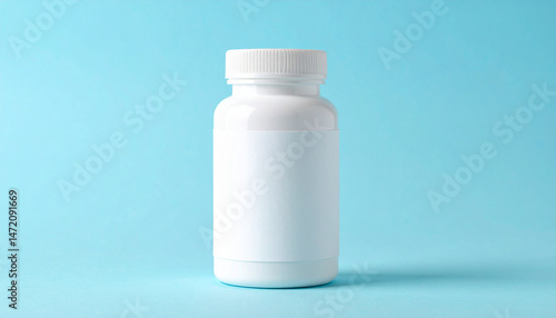 Blank white pill bottle mockup with white label. Jar mockup