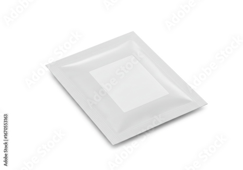 Blank white sachet packaging for sample products, promotions, or branding, isolated on white