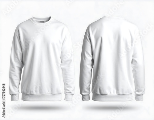 blank, white, sweatshirt, front, back, pullover, casual attire, clothing, apparel, design, fashion, template, style, unisex, long sleeve, cotton, simple, plain, wearable, product, illustration, digital, realistic, rendering