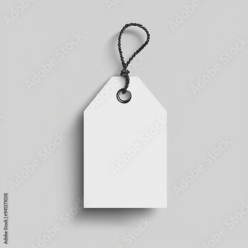 Blank White Tag with Black String and Metal Ring