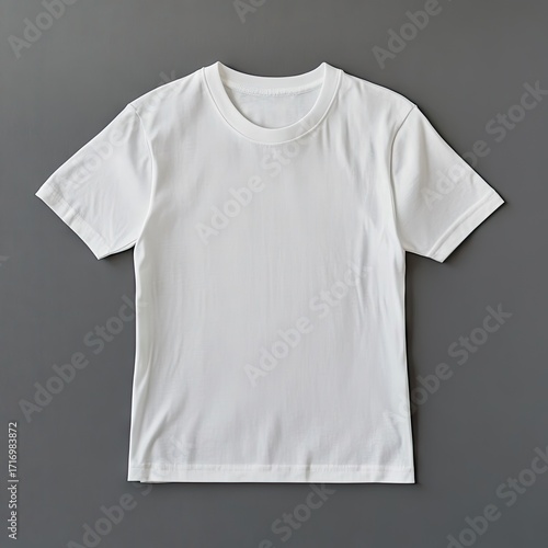 white, t-shirt, blank, plain, short, sleeve, crew, neck, garment, clothing, apparel, casual attire, simple, solid, cotton, comfortable, basic, unisex, style, fashion, everyday, wear, tee, top, relaxed, minimalist, modern, front, back, flat, lay, grey, background, photograph, product, new, design, soft, light, wearable, essential