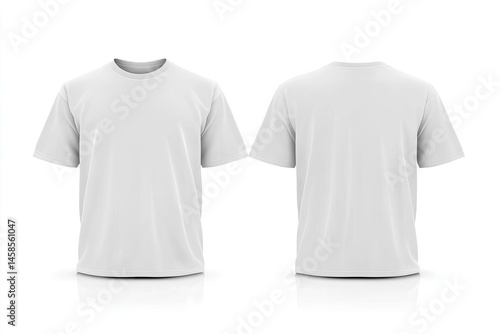 blank, white, t-shirt, front, back, unisex, casual attire, short, sleeve, cotton, apparel, clothing, design, template, printing, graphic, digital, render, realistic, product, presentation, illustration, comfortable, summer, fashion, style, simple, plain, basic, wearable, pullover, round, neck, ready, to, print, customizable, view, isolated, studio