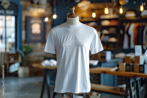 Blank white T-shirt on a mannequin in a modern stylish boutique