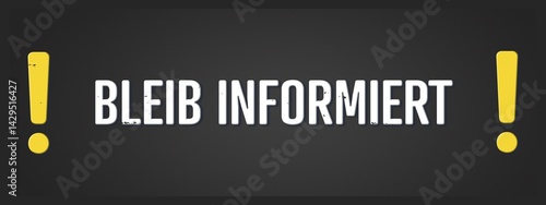Bleib informiert (Stay informed) - A blackboard illustration with white text.