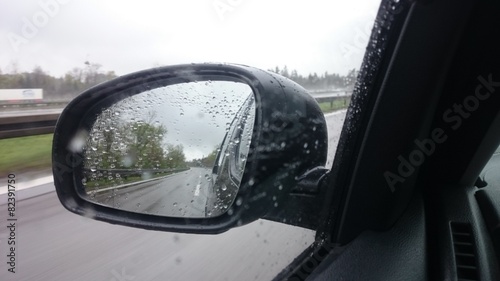 mirror, rear-view mirror, street, interstate, drive, driving, rain, rainy, look, look, behind, retrospective